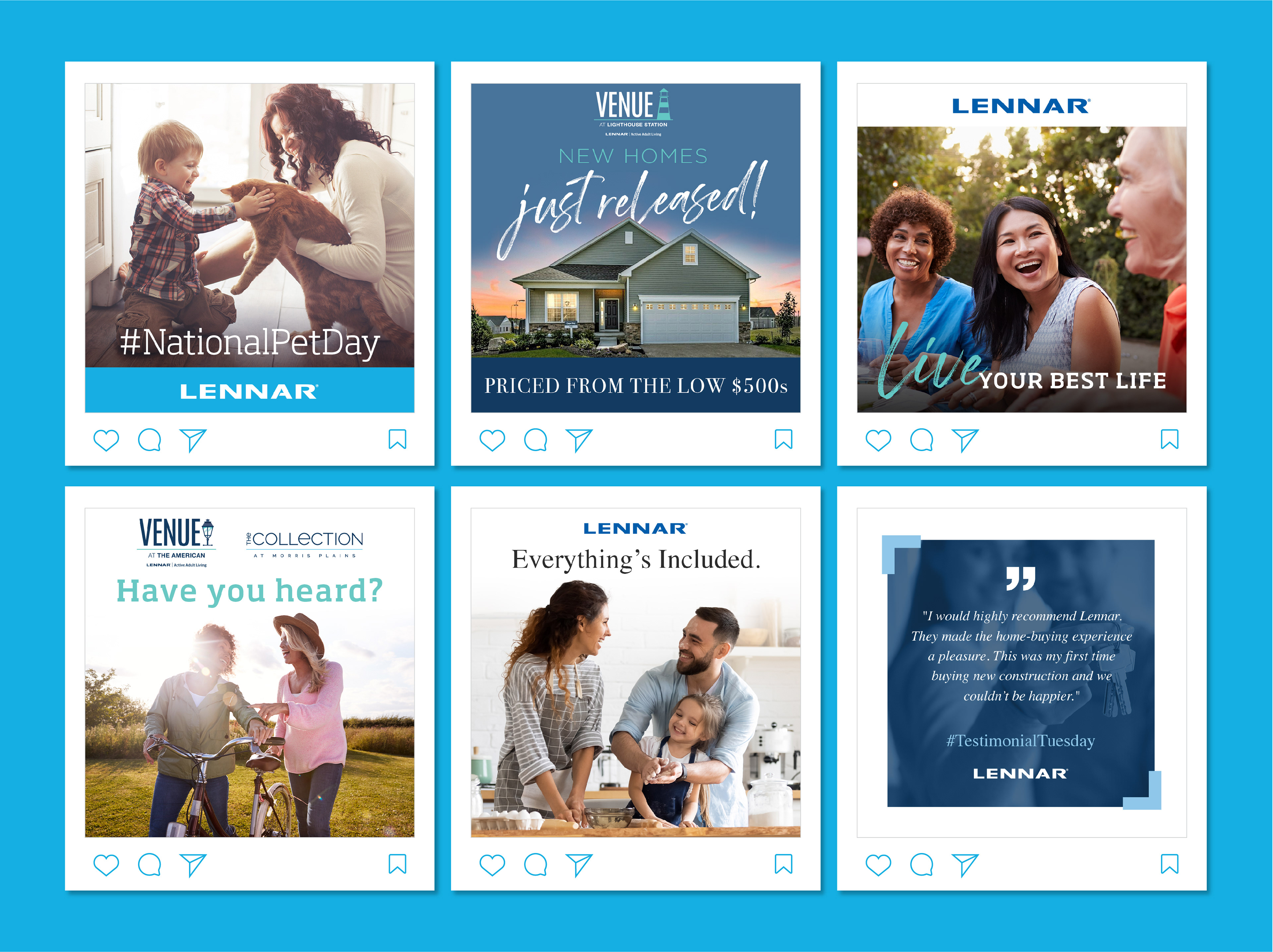 A collection of digital social media campaigns for assorted home building and real estate companies.