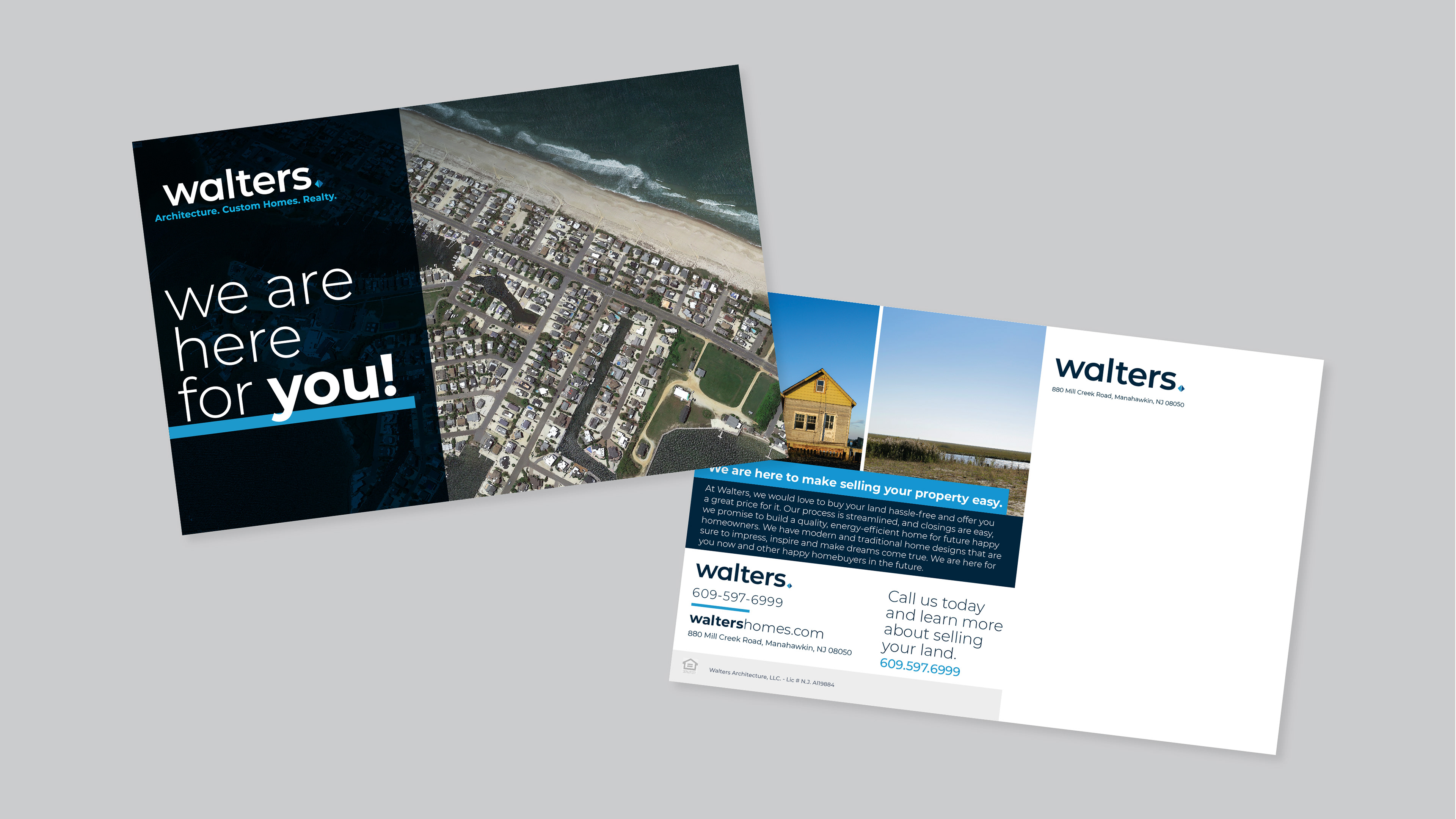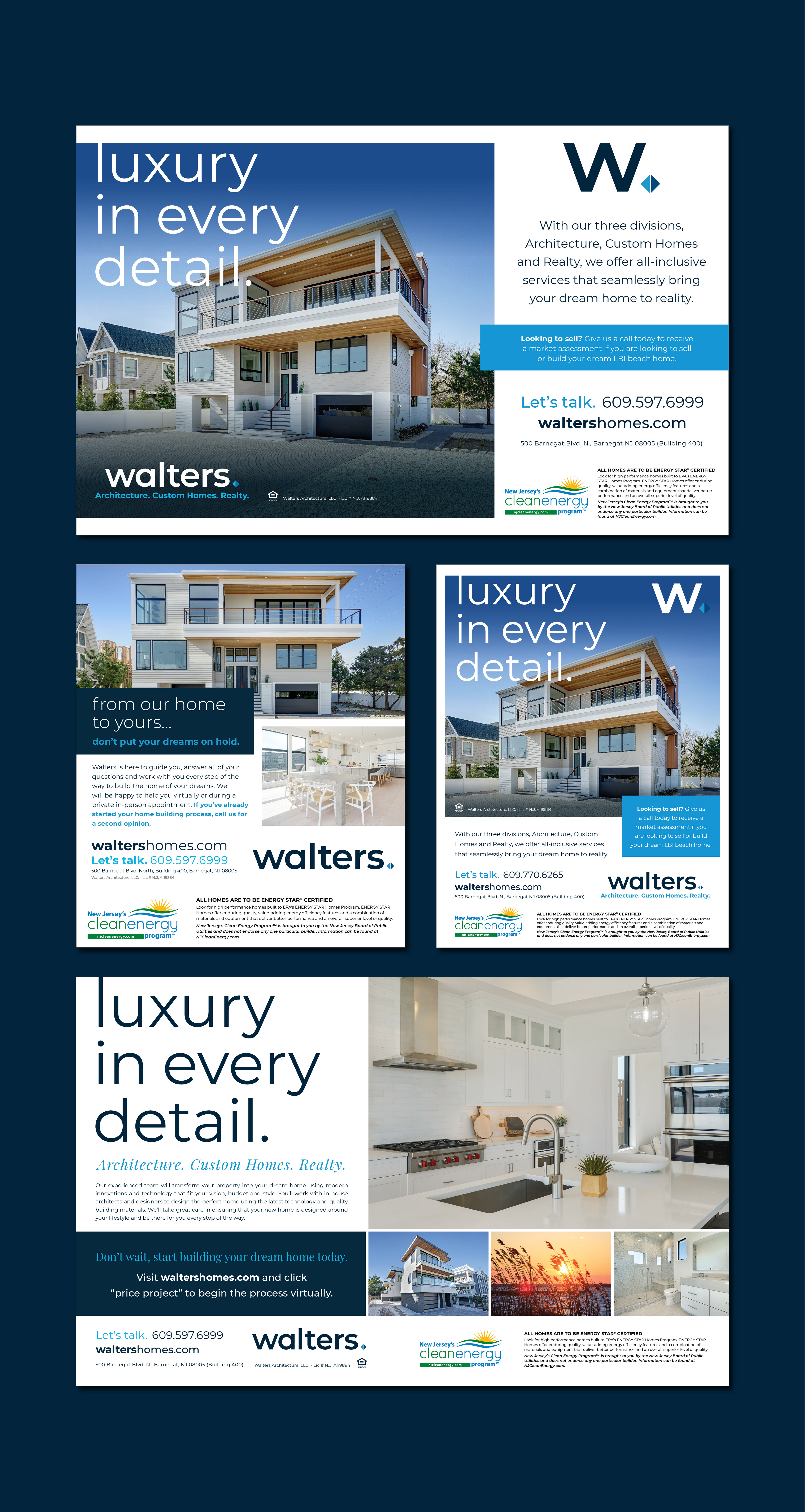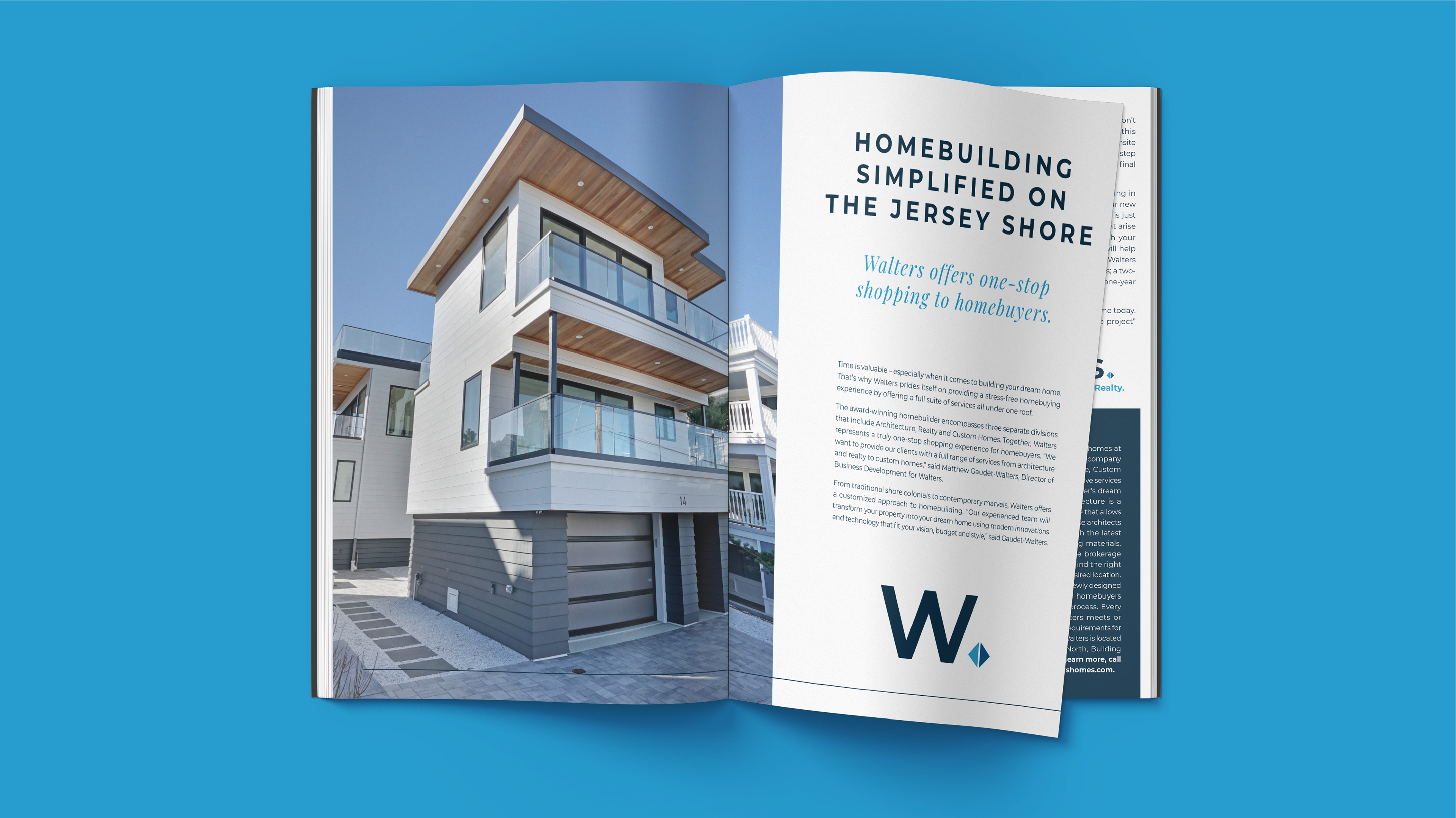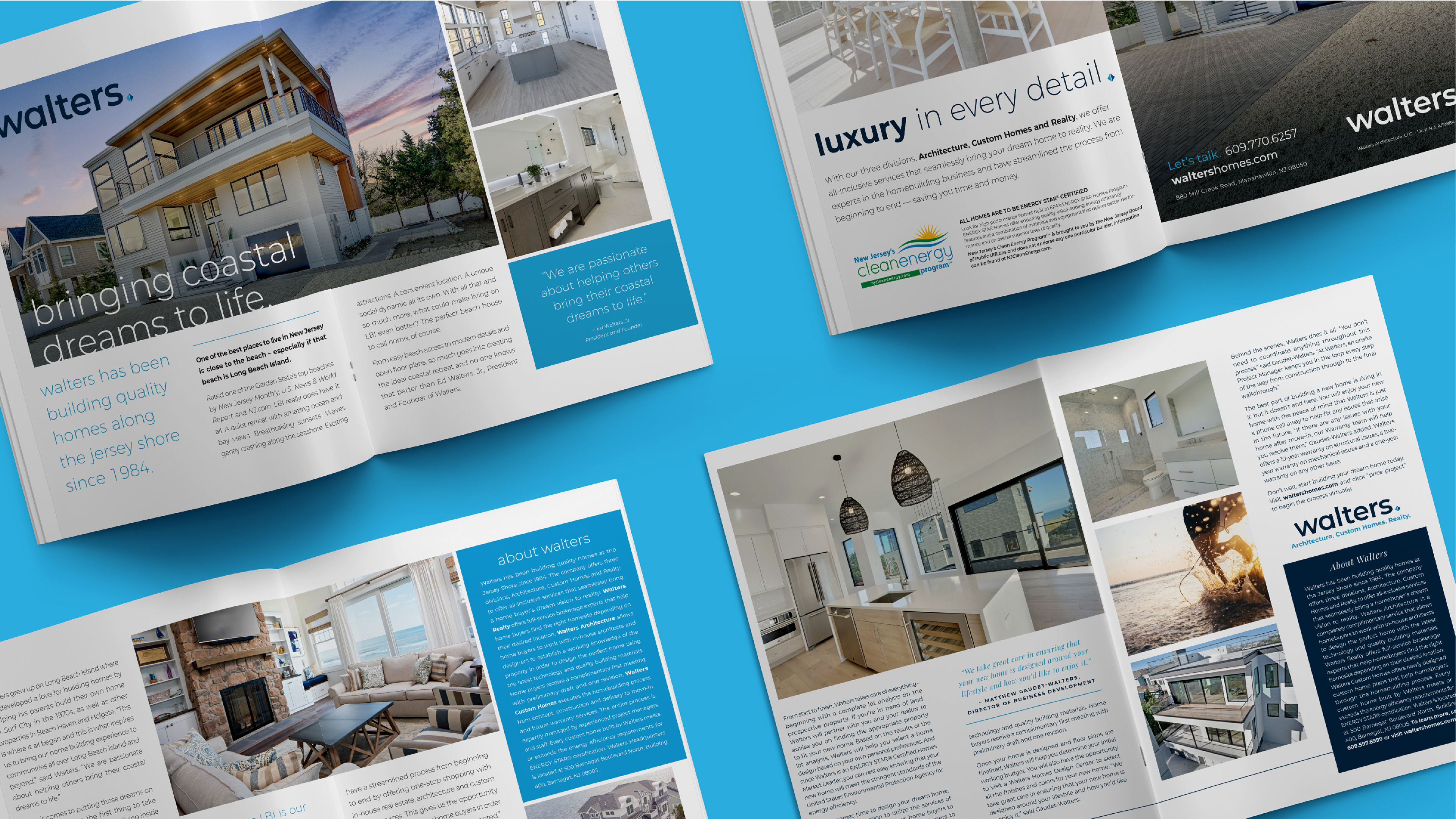 A suite of print and digital designs for Walters Homes, a luxury, custom home building firm on the Jersey Shore.